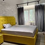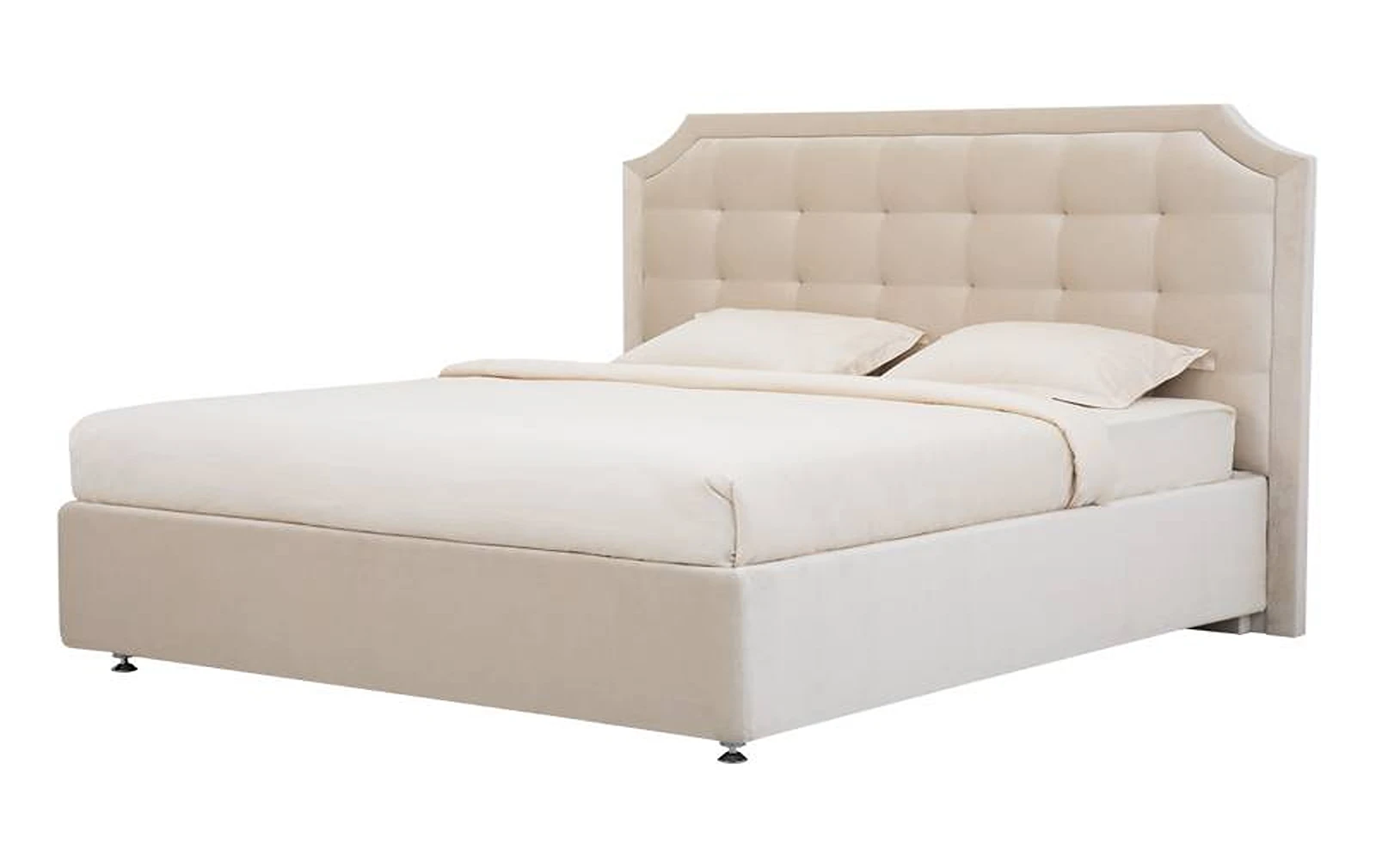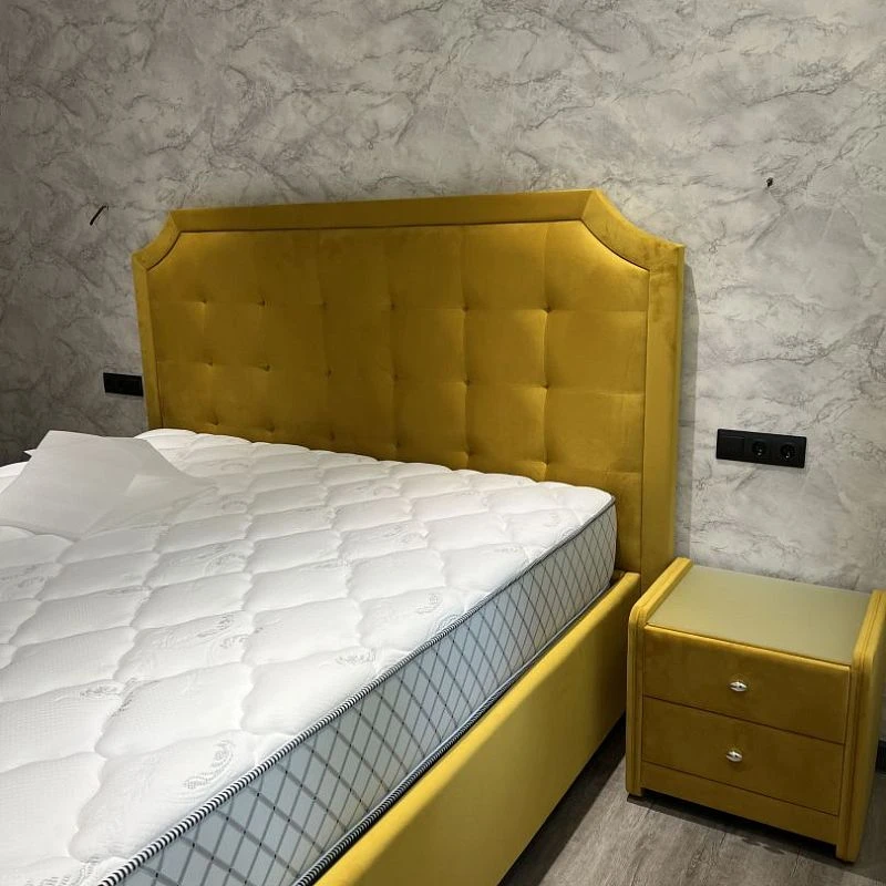 Tall headboard with soft tightenings is surrounded with massive decorative frame that literally attracts attention highlighting the exquisite style of the room. The possibility to select upholstery colour enables you to imagine various decoration options for your bedroom.