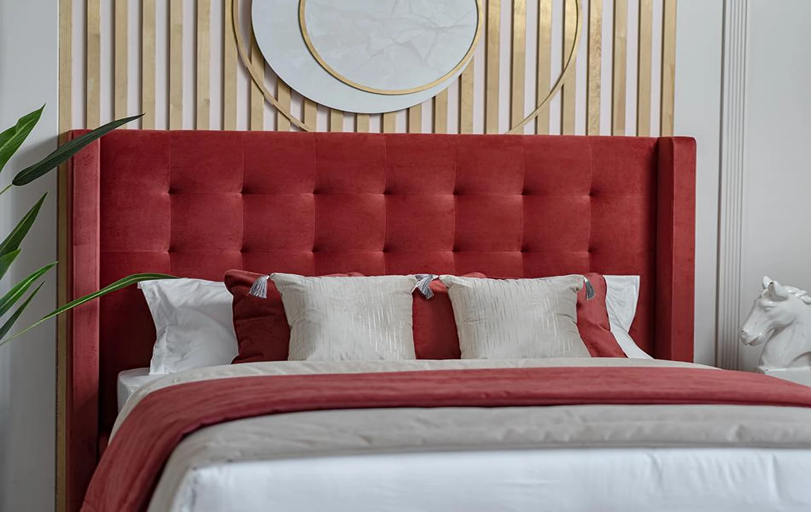 - The bed is suitable for space zoning – the back part of the headboard is made of the main upholstery fabric