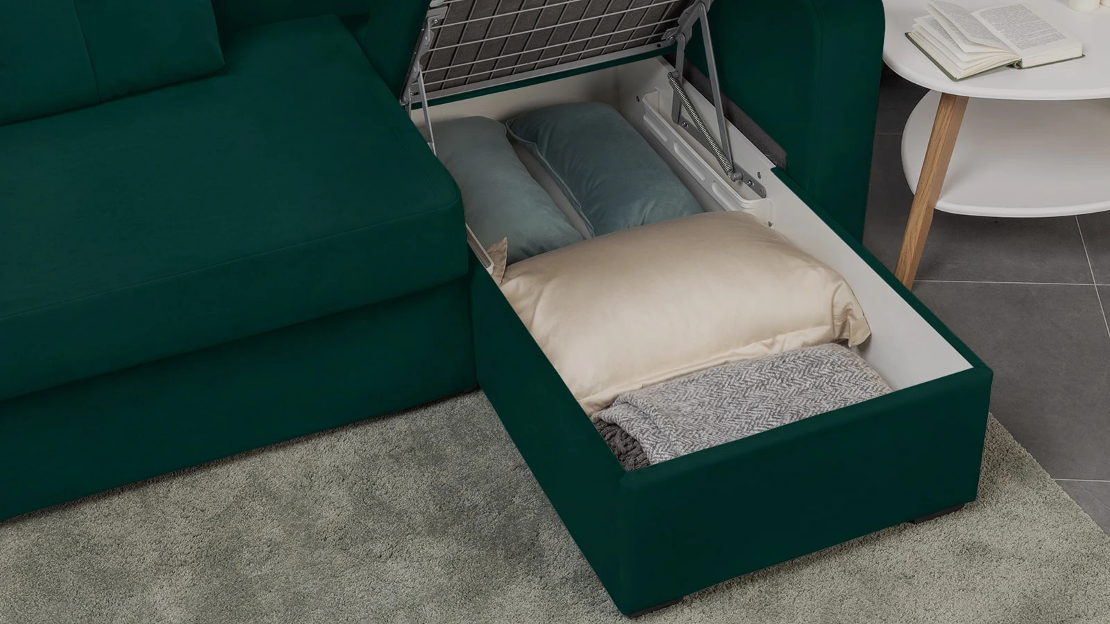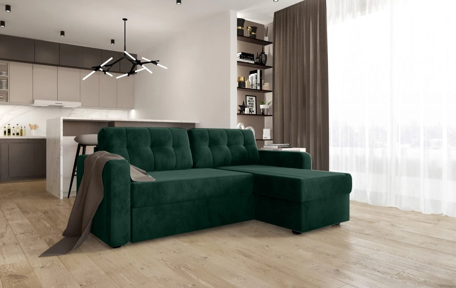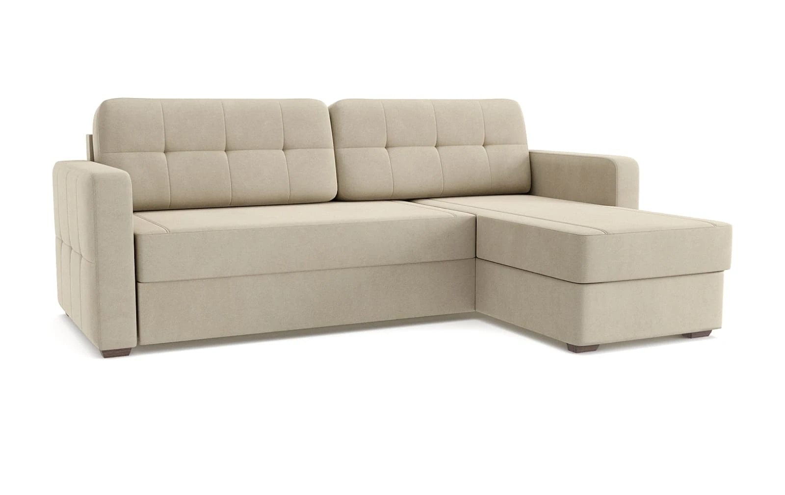 Lucky corner sofa with wide armrests with small canapes and Dolphin transformation mechanism is stylish and compact. The medium seat depth provides daily comfort for both children and adults.The backrest is made of upholstery material, the sofa is suitable for space zoning. The triple pull on the cushions and armrests lends the Lucky its expressiveness.