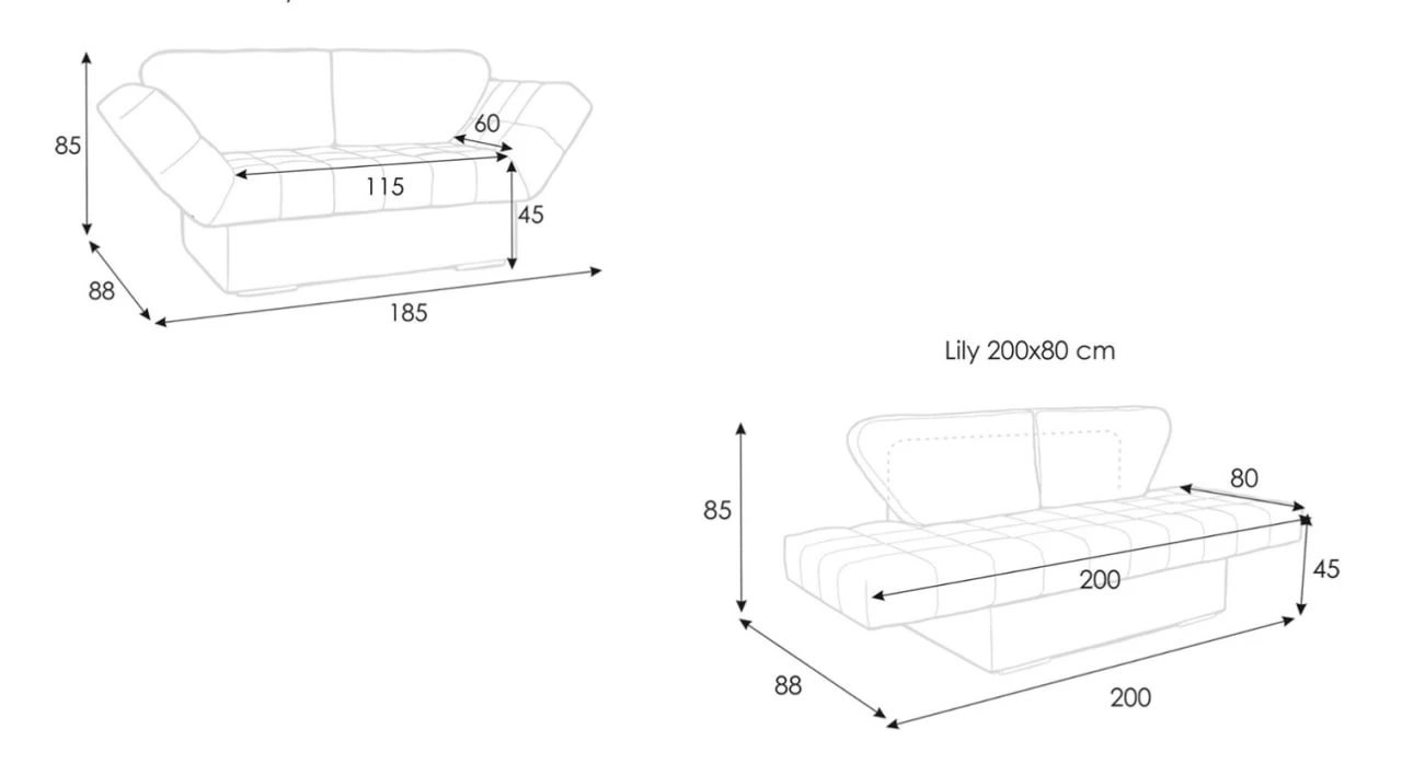 The Lily convertible sofa bed is stylish and compact, with lines' original geometry and expanded functionality. The adjustable headboard and leg section will open new comfort dimensions for relaxing or working from home. The raised armrests create an atmosphere of security and cosiness while adding a touch of presentability. The reliable Lit transformation mechanism easily converts the sofa into a full-fledged sleeping place - you just have to press on the armrest. The reinforced metal frame is at the base of the mechanism, providing increased endurance and safe daily transformation.