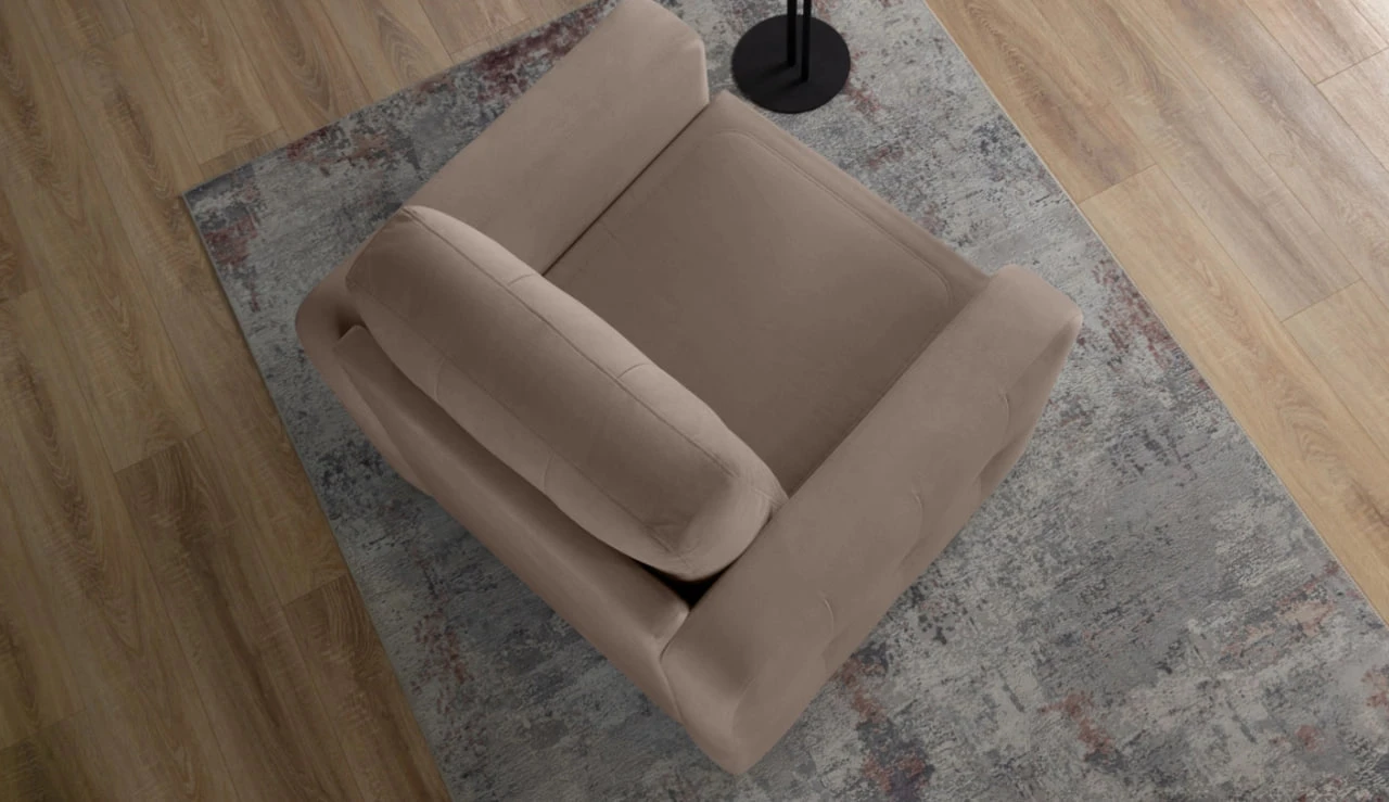 Lucky armchair - an armchair with increased seating depth. It is comfortable to sit and relax in it even for tall people. The soft trapezoidal cushion provides gentle back support. The filling of the pillow is synthetic fluff. Stylish double tightening protects it from deformation.