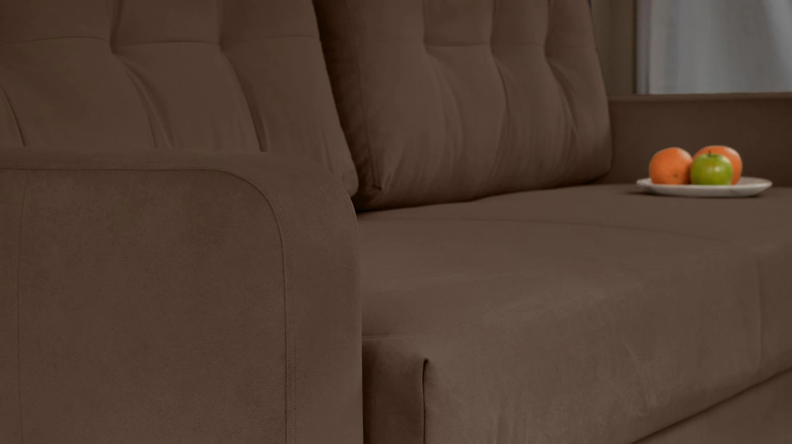 The straight sofa for the living room Lucky with wide armrests with Pantograph transformation mechanism is stylish and compact. The medium seat depth provides daily comfort for both children and adults. The backrest is made of upholstery material, the sofa is suitable for zoning space in studio apartments. The classic triple bracing on the cushions and armrests gives the Lucky a fresh look and feel.