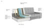 The sofa has a high mattress, unique for this type of transformation. 7-zone spring block consisting of classic independent springs (“barrel” shape) and “Hour Glass” springs support the spine “pointwise” in an anatomically correct position.
